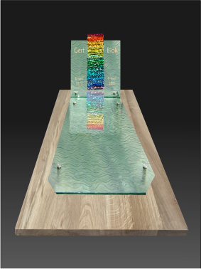 Er zijn weinig aanbieders van houten grafmonumenten deze werken vooral met teakhout. Uit principe werk ik liever niet met teakhout, het kost jaren om zo’n boom te laten groeien en de ontbossing is een serieus probleem. Werken met Europees hardhout is het duurzame en perfecte alternatief en doet kwalitatief niet onder. Wis je dat naast mijn glasatelier een authentieke houtzagerij gevestigd is? Daar kunnen we een bezoekje afleggen en een eigen boomstam uitzoeken waar we het houten grafmonument van gaan maken.